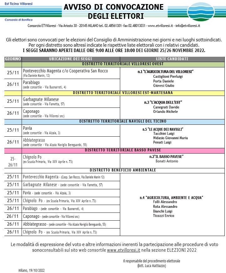 Descrizione Est Ticino Villoresi - Avviso Convocazione Elettori 25/26 Novembre 2022 Allegati Documenti Convocazione elettori [.png 365,52 Kb - 17/11/2022] Ultimo aggiornamento pagina: 16/10/2023 16:11:51