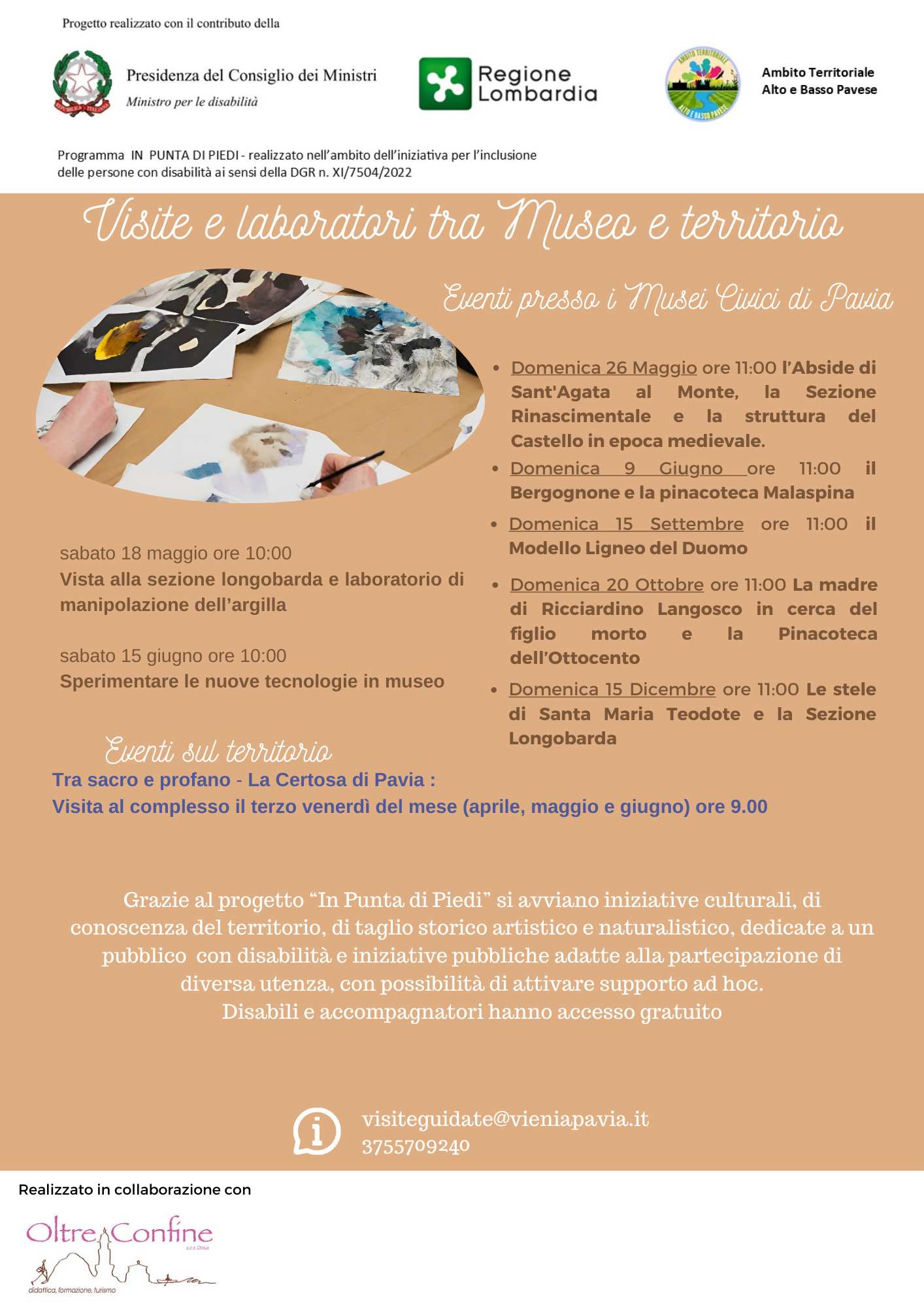 Descrizione Progetto in Punta di Piedi Allegati Documenti Brochure in Punta di Piedi [.pdf 3,5 Mb - 14/06/2024] locandina Belgioioso [.pdf 483,88 Kb - 14/06/2024] locandina comunicazione Libertas [.jpg 495,28 Kb - 14/06/2024] locandina comunicazione Oltre Confine [.png 884,1 Kb - 14/06/2024] locandina Siziano [.pdf 554,67 Kb - 14/06/2024] Ultimo aggiornamento pagina: 14/06/2024 18:35:11